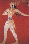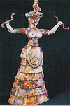 Auf Kreta trugen Männer unterschiedlich drapierte Lendenschurze mit sehr schmalen, gegürteten Taillen (Wespentaille) und lange Haare. Die Frauen trugen bodenlange, nach unten weiter werdende Röcke. Auch Frauen hatten Wespentaillen, vermutlich durch lebenslange Schnürung. Reich verzierte Gürtel oder Überwürfe ergänzten das Outfit.